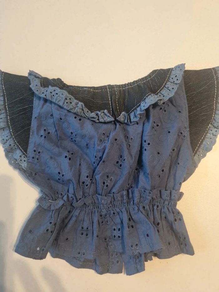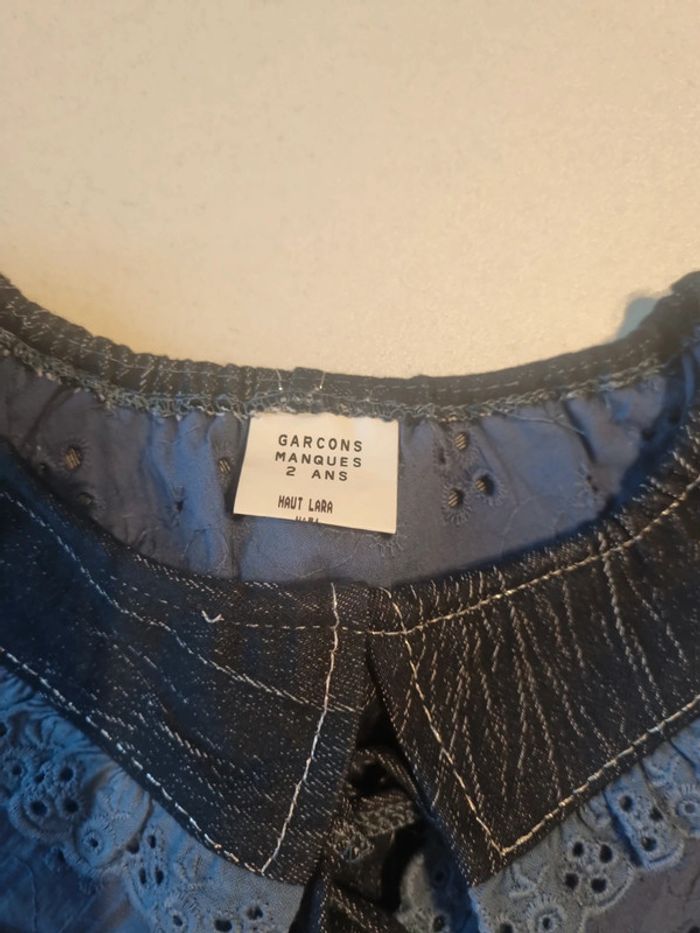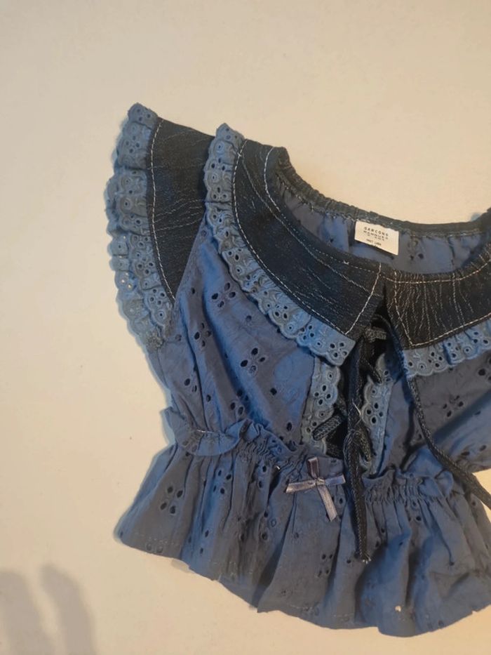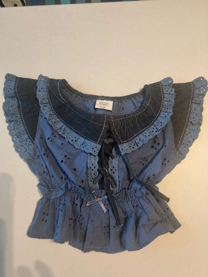 Petit haut à volants bleus, coton, garçons manqués, 24 mois #somara66fille24mois