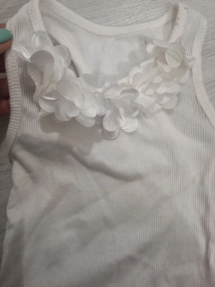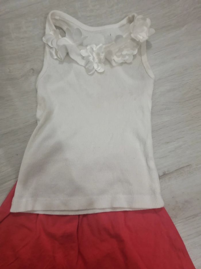 Tenue 24 mois composée d'un débardeur blanc avec fleurs à reliefs ( petite tâche à l'epaule) et une jupe évasée taille elastiquée #somara66fille24mois