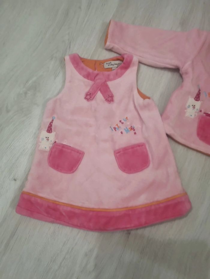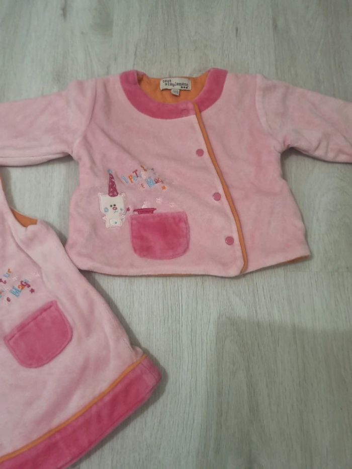 Ensemble 3 mois en velours épais, avec robe et veste,en coton et polyester , rose et orange,tout simplement #somara66fille3mois