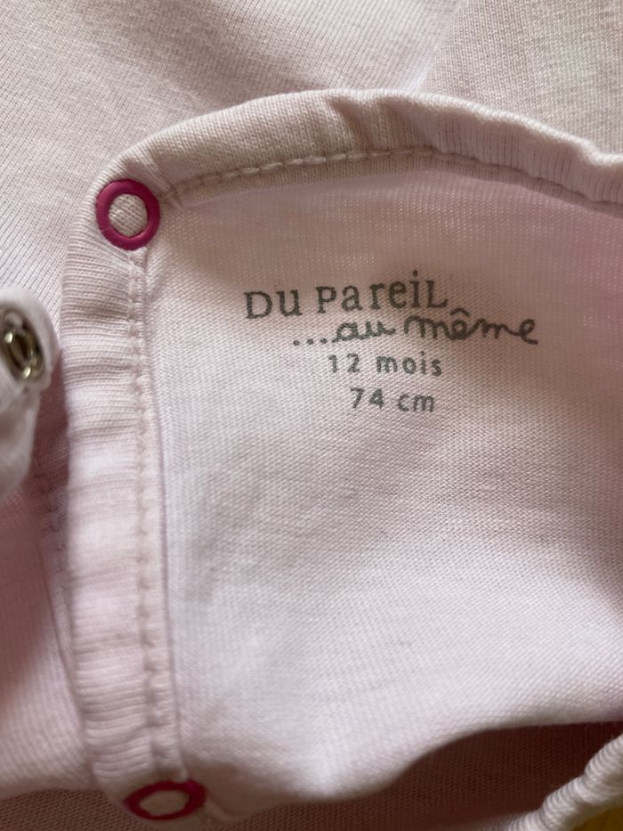 taille 12 mois ouverture par pressions dans le dos étiquette coupée