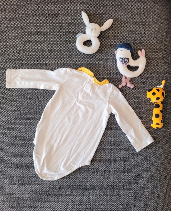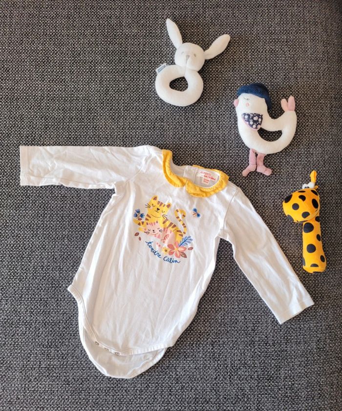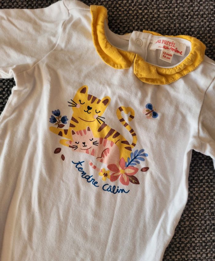 Body pour fille de taille 12 mois et de la marque Du Pareil Au Même (DPAM) A manches longues avec petit col En coton stretch avec un motif chat sur la poitrine Aucune tâche ni trou #mabi38780fille12mois