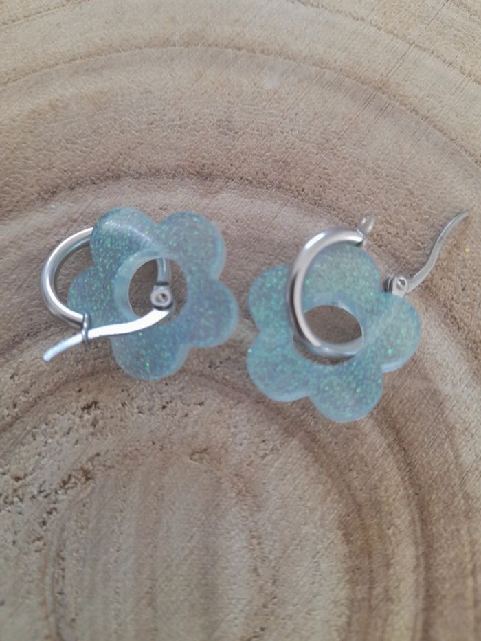 Boucles d'oreilles fleur bleu clair - photo numéro 2