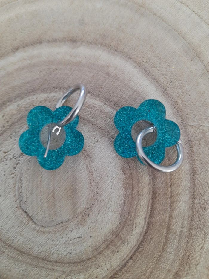 Boucles d'oreilles fleurs turquoises - photo numéro 1