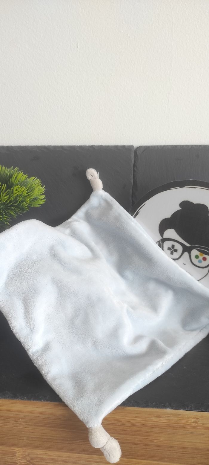 Doudou plat chien ours Kimbaloo In Car Vib bleu marron rouge La Halle Foulard