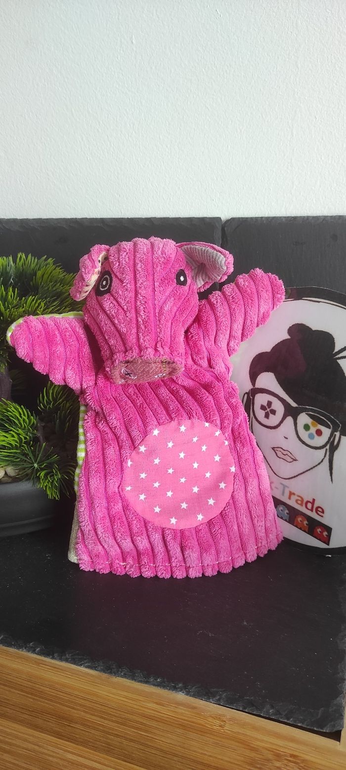 Doudou marionnette Jambonos le cochon les deglingos rose rond etoiles vert Rayé - photo numéro 1