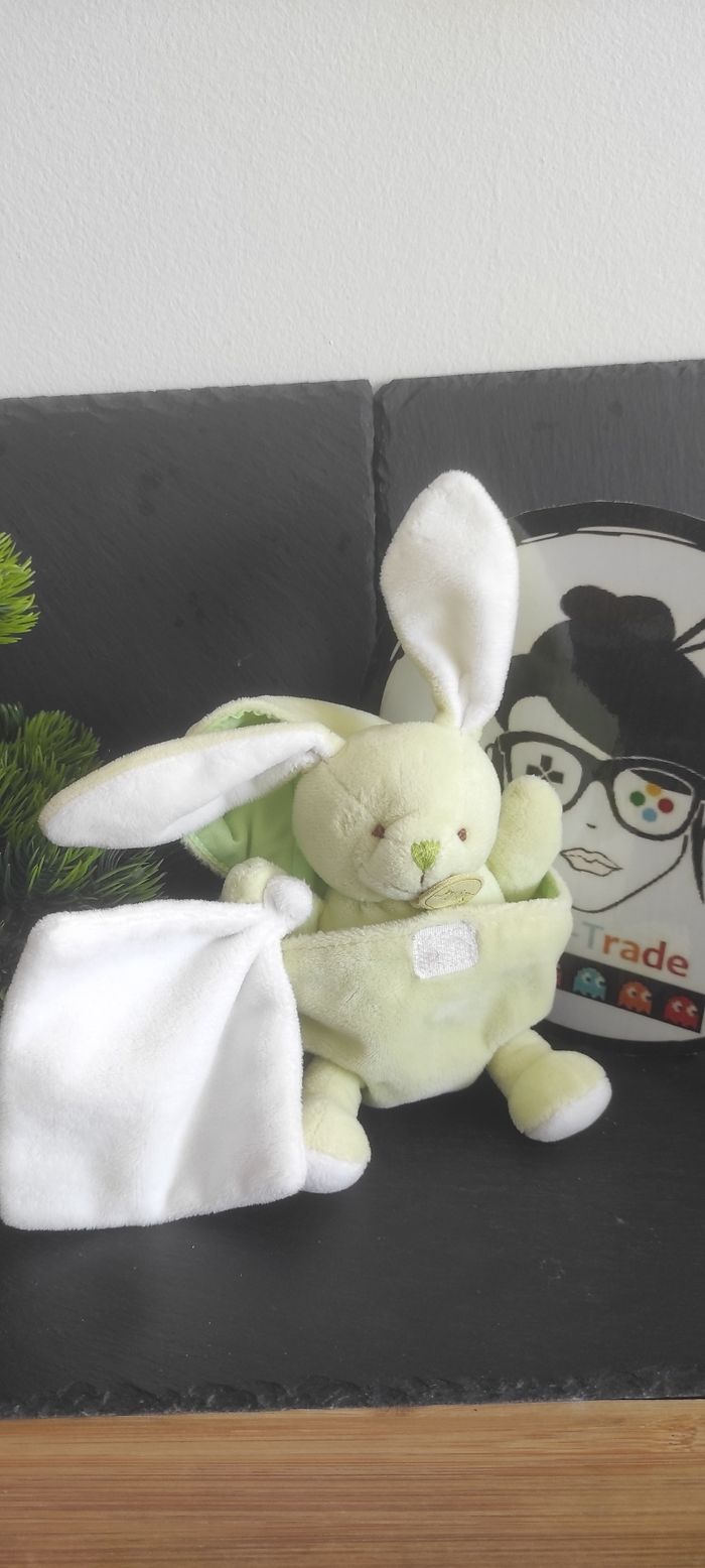 Doudou lapin vert coquille mouchoir Pâques oeuf mouchoir blanc Baby Nat Attache - photo numéro 1