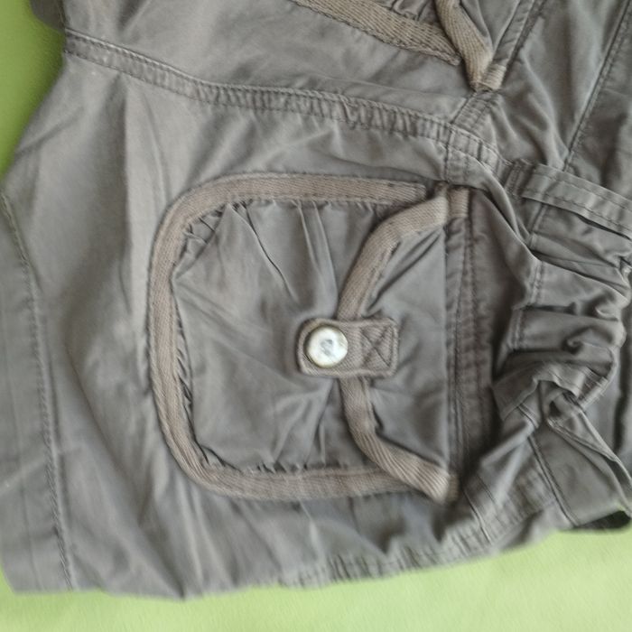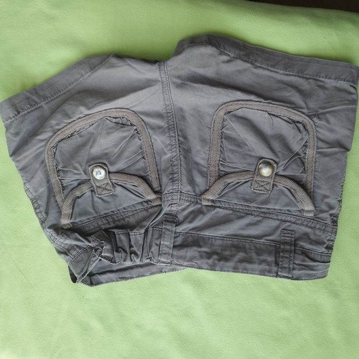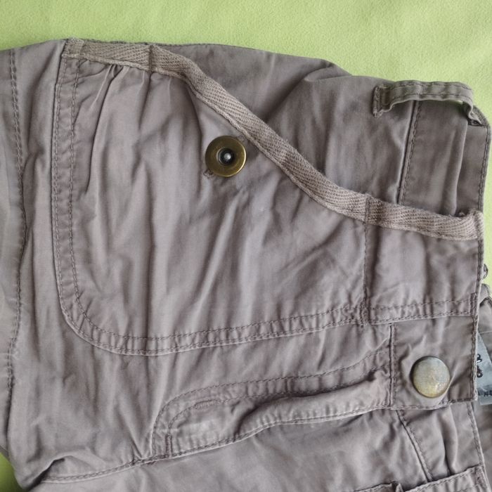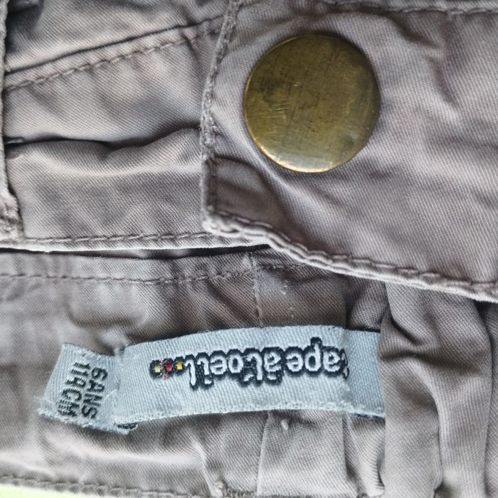 Short court pour fille 6ans de Tape à l'Oeil. Poches avant et arrière avec bouton pression. Tour de taille ajustable par élastique boutonné à l'intérieur. Couleur Taupe