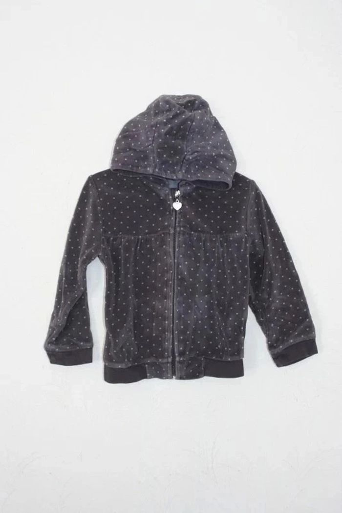 Sweat à capuche en velours gris à pois marque Kidkanai de chez Kiabi taille 5 ans (200g)