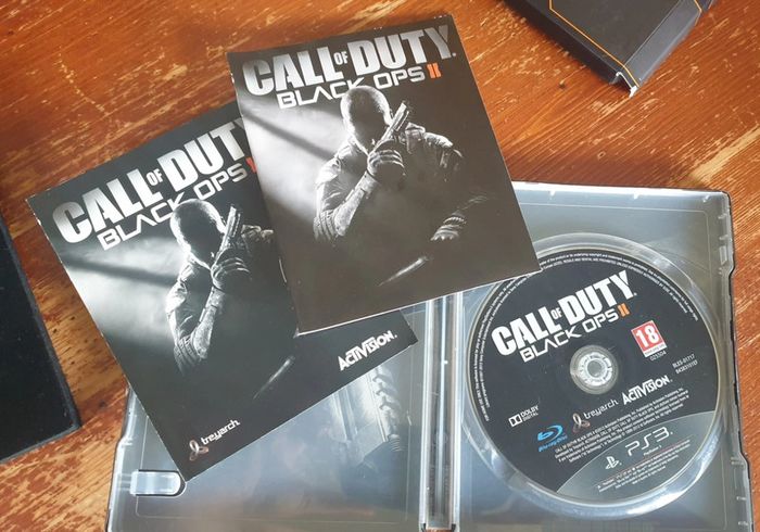 Coffret collector jeu Call of Duty Black ops II Edition francaise "Hardened edition" PlayStation 3 PS3 Avec jeu + jetons Contient le coffret, les jetons et le jeu. Le jeu et les jetons sont en parfait etat La boîte du coffret et la boîte metal du jeu ont des traces et rayures (voir photos). Le coffret n'a plus les glissières. #Placpui38Jeu