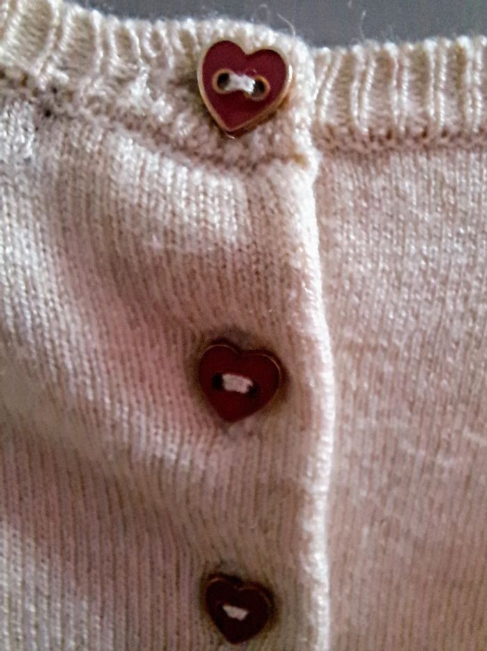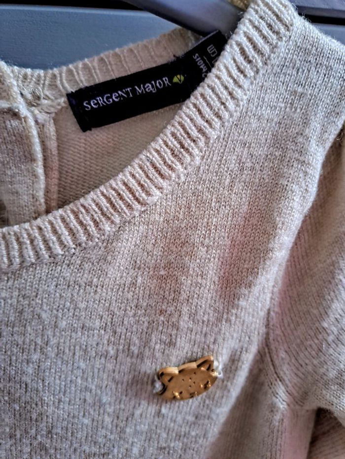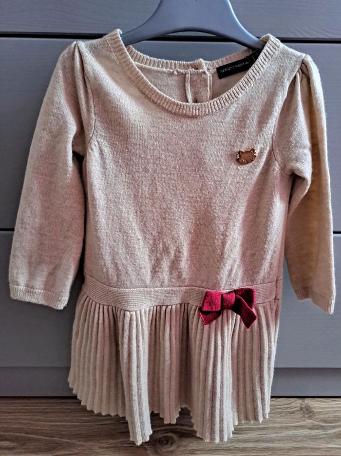 Robe d'hiver, chaude et toute douce Fermée par 3 boutons en forme de cœurs dans le dos Bas plissé Coloris beige et détails bordeaux Marque Sergent Major Taille 12 mois (74 cm) 40% polyamide, 40% acrylique, 20% laine Très bon état #mariliz25fille12mois