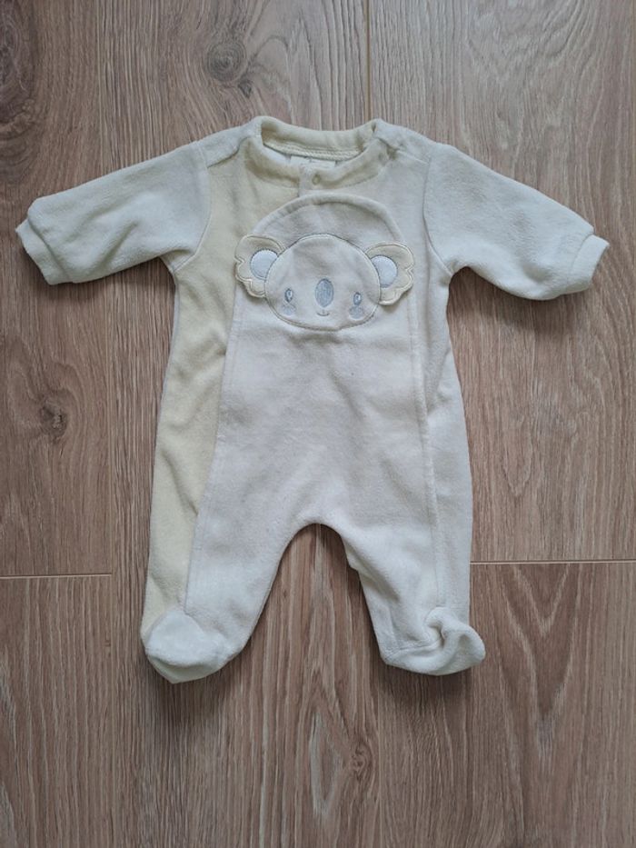 Pyjama une pièce avec ouverture par pressions devant Modèle mixte Taille naissance (50 cm) 75% coton, 25% polyester Très bon état #mariliz25garçonnaissance #mariliz25fillenaissance