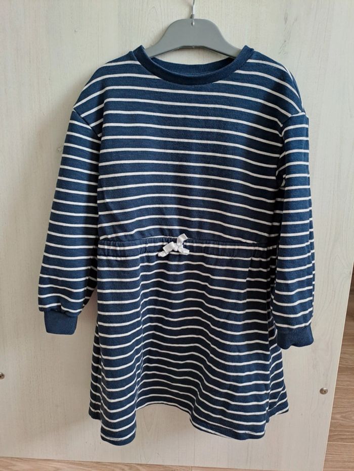 Robe sweat marinière Taille élastiquée et petit nœud 100% coton Taille 8 ans Excellent état #mariliz25fille8ans