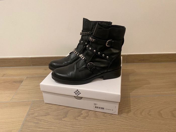 A peine portées 2-3 fois État proche du neuf (encore l étiquette en dessous) Modèle ferly avec extérieur et intérieur cuir noir Fermeture par glissière Pointure 41 Achetees 139€ #laulau68_chaussuresfemme