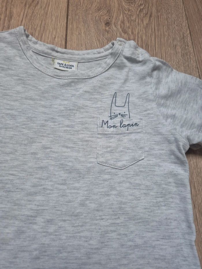 Tee-shirt MC tape à l'œil gris chiné "mon lapin" 36m en parfait état - photo numéro 3