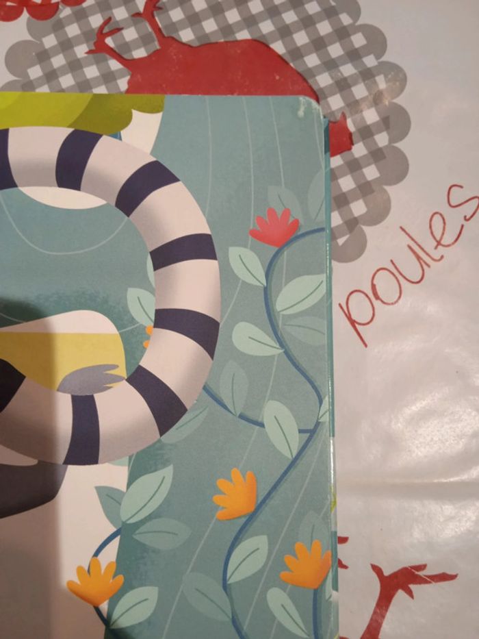 Livre cartonné en très bon état. Petites traces d'usure sur la couverture, une page et accrocs sur la dernière double page (cf photos).