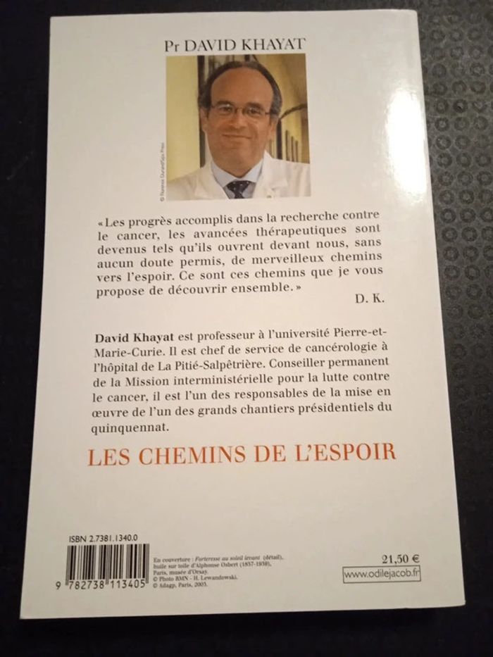 En très bon état. "Les progrès accomplis dans la recherche contre le cancer et les avancées thérapeutiques sont devenus tels, qu'ils ouvrent devant nous, sans aucun doute permis, de merveilleux chemins vers l'espoir. Ce sont ces chemins que je vous propose de découvrir ensemble", D. K. David Khayat est professeur à l'université Pierre-et-Marie-Curie. Il est chef de service de cancérologie, à l'hôpital de La Pitié-Salpêtriére."