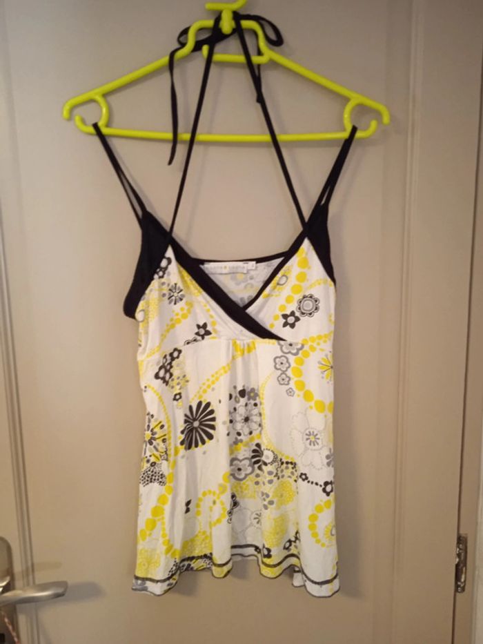 Débardeur Cache cache, taille 2, avec laçage dans le cou en plus des bretelles. En très bon état.