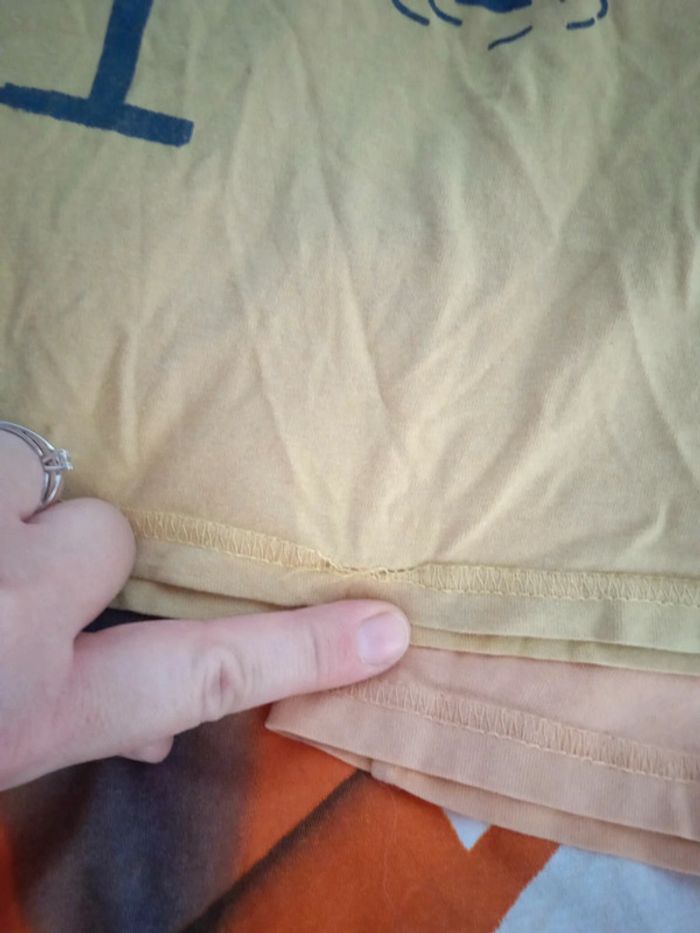 En bon état. La couture est abîmée sur le jaune et une petite tâche sur le saumoné. #chama_685ans