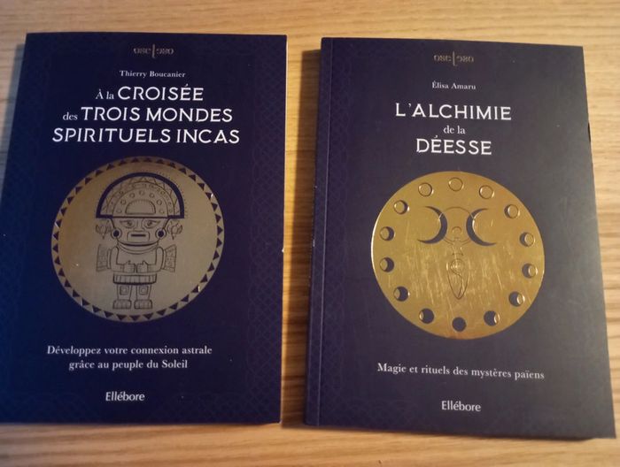 En très bon état. La couverture présente de légères traces d'usure. - à la croisée des trois mondes spirituels incas, 9€ - L'alchimie de la déesse, un petit accroc sur la tranche de la couverture. 9€ #chama_68esoterisme