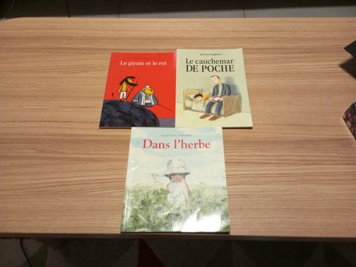 En lot ou à l'unité: -Le Cauchemar De Poche, en bon état. La première page a été pliée ( cf photo), et une autre a une petite trace d'usure au bas. 2€ En très bon état. - Dans l'herbe : il a légèrement gondolé ( cf photo): 3€ - Le pirate et le roi : 4€ #chama_68livresécoledesloisirs