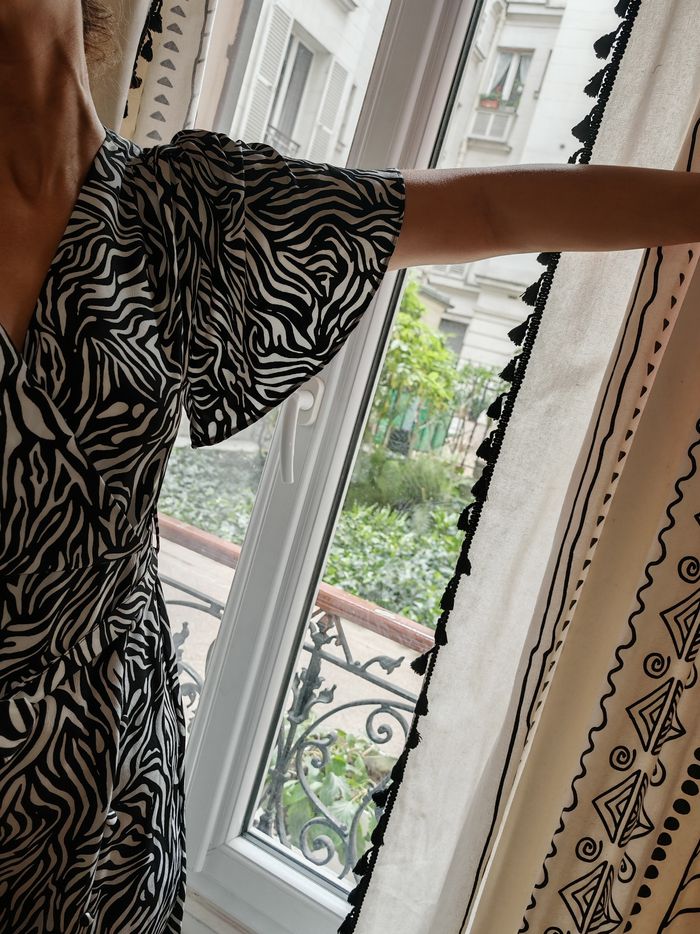 Robe femme fluide longue imprimée noire et blanche - photo numéro 4