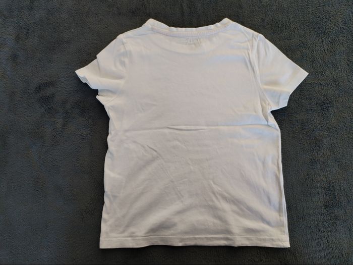 Tee-shirt blanc 4 ans (98-107cm) Kiabi Il est en très bon état hormis une tâche à l'arrière en bas (voir photo)