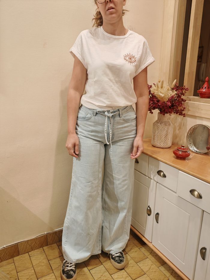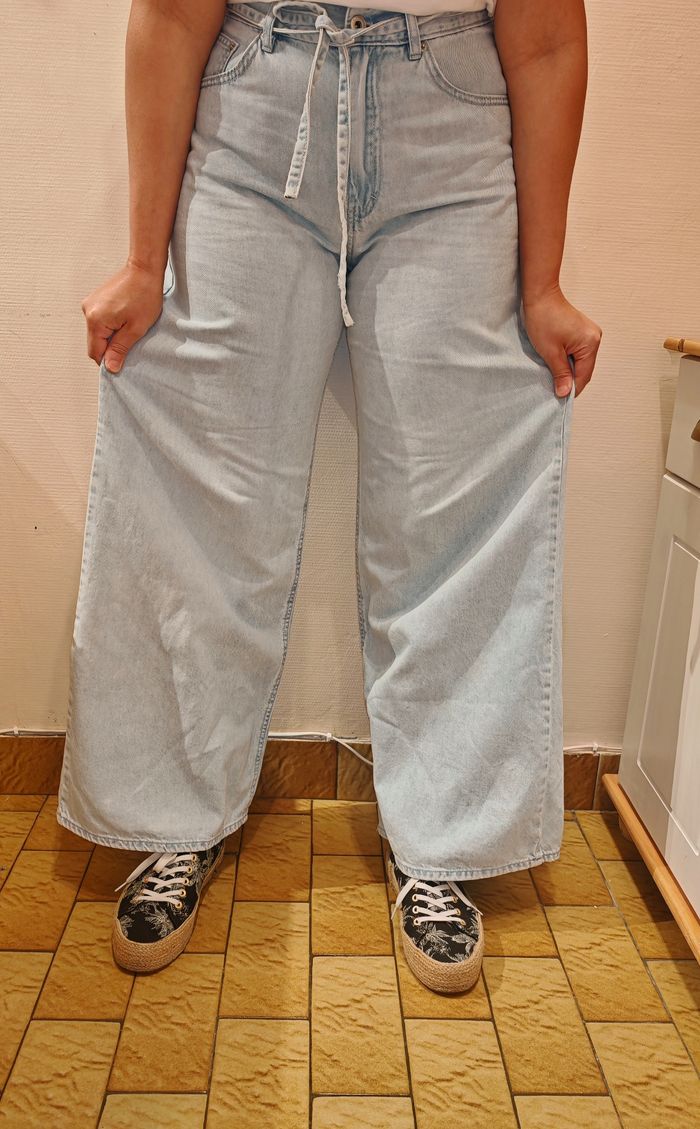 Jean femme large taille haute, 40, matière jean coton, avec cordon,