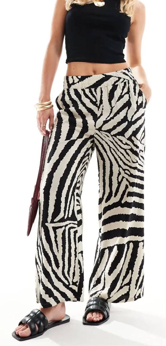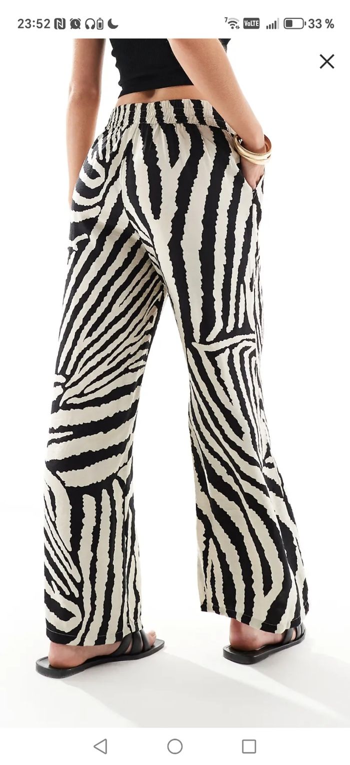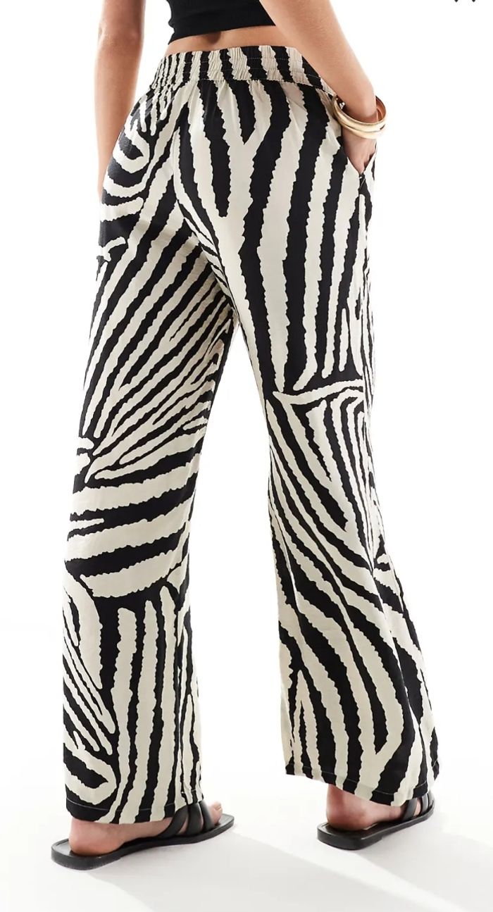 Pantalon femme fluide imprimé taille 40 avec poches, matière légère et douce, agréable à porter