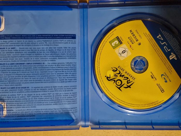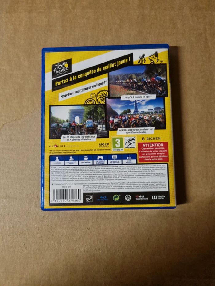 Jeu Tour de France 2019 en bon état. Version française. Le CD est en parfait état sans aucune rayure ou trace. La jaquette est un peu froissée et est déchirée sur quelques centimètres sur le devant (voir photo 4).