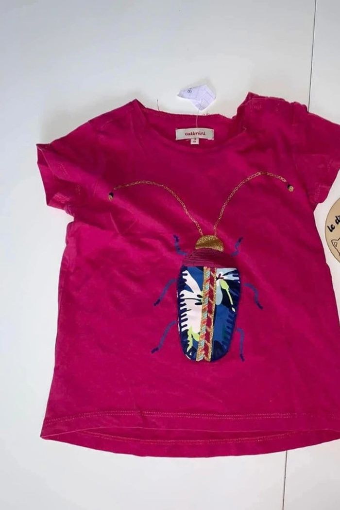 Tee shirt rose avec un scarabee dessus Très bon état aussi petite tache Taille 3ans de chez catimini #ludie8635_3ansfille