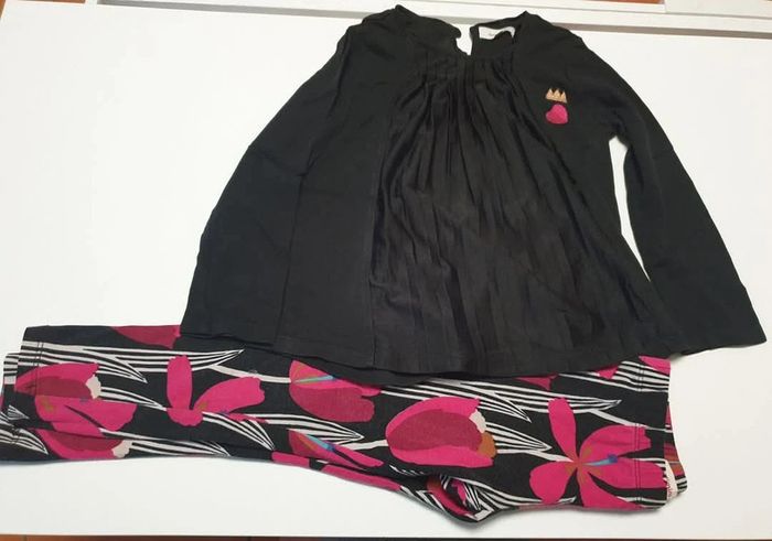Ensemble noir et rose a fleur catimini Taille 4 ans Très bon état mais petit trou #ludie8635_4ansfille