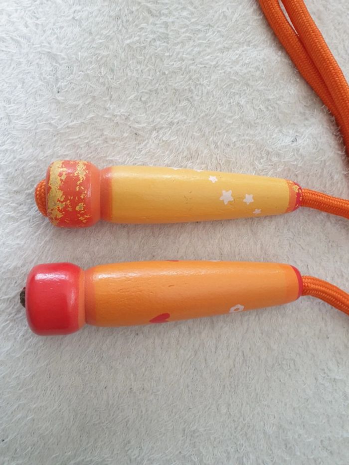 Grande Corde a sauter. Elle mesure environ 2,70m. Les poignées sont abîmées mais la corde est en parfait état. #eve.08_jouet_fille #eve.08_jouet_garcon