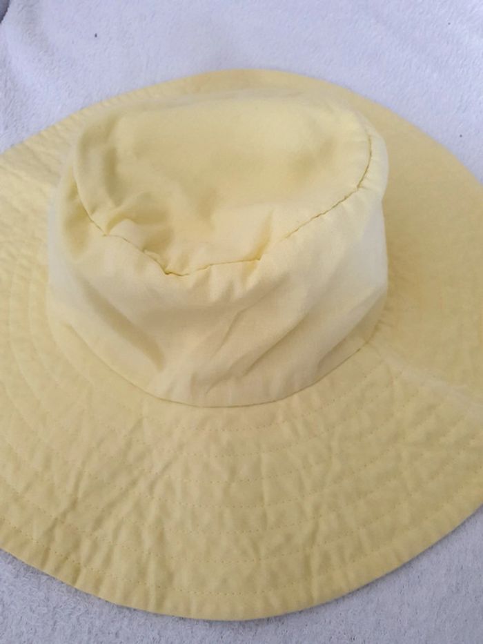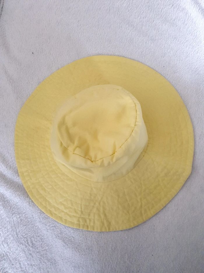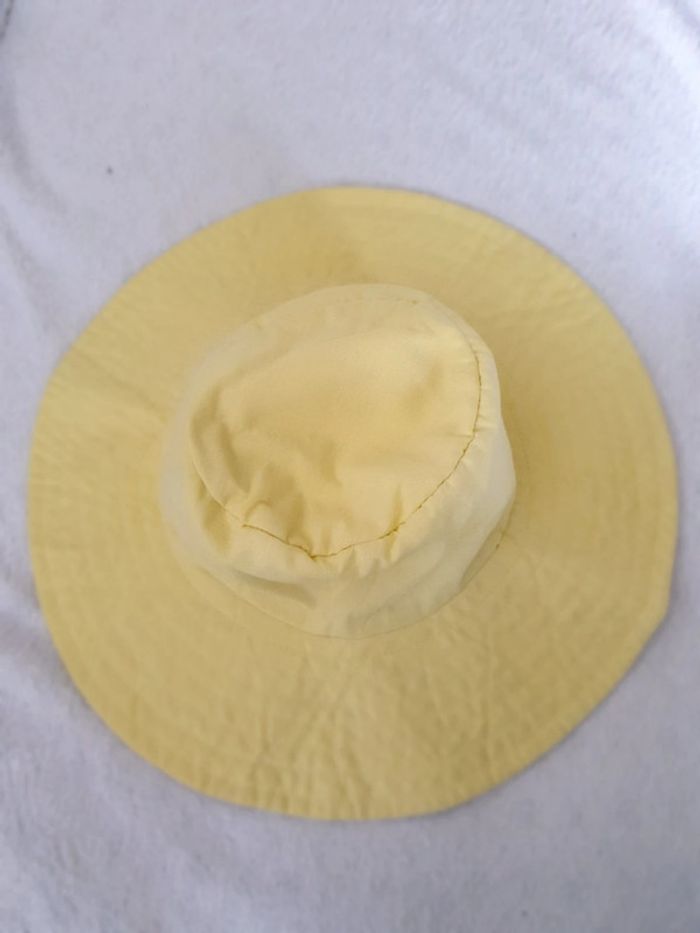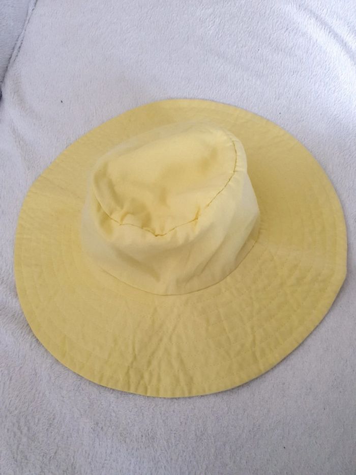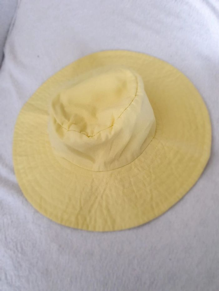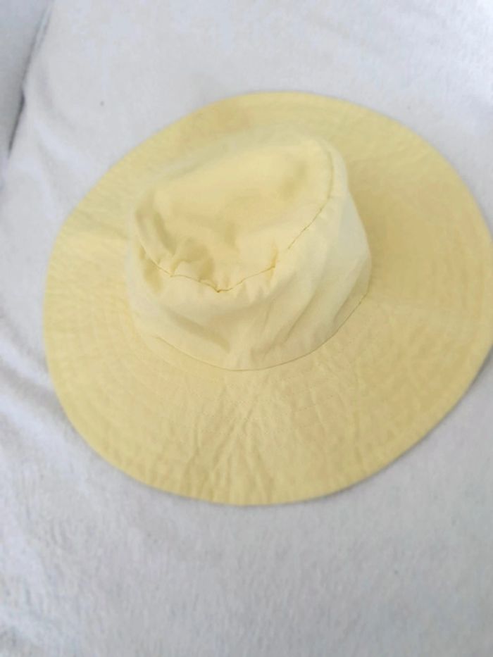 Chapeau jaune. Il mesure environ 58cm. Le bord mesure environ 9cm. Le chapeau est en parfait état, je ne pense pas qu'il ait déjà été porté. #eve.08_casquettechapeau