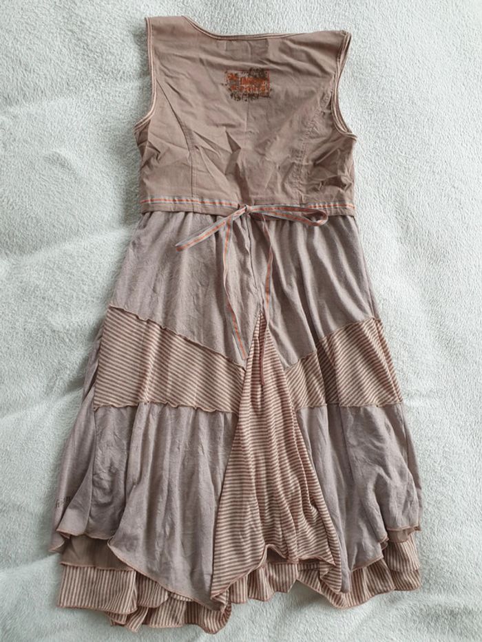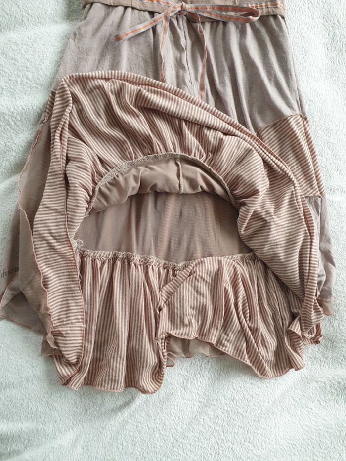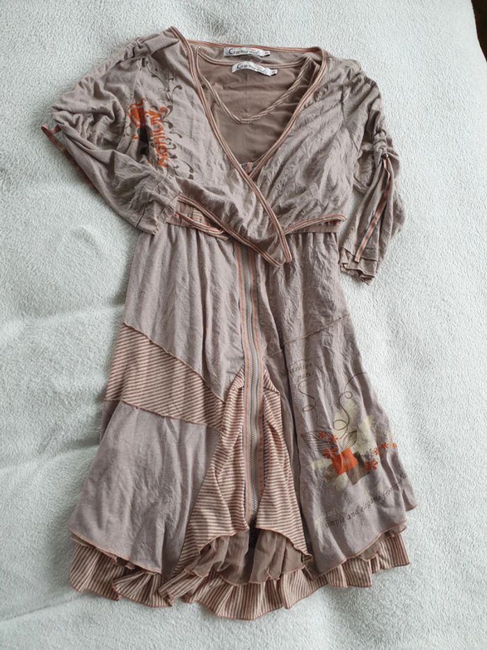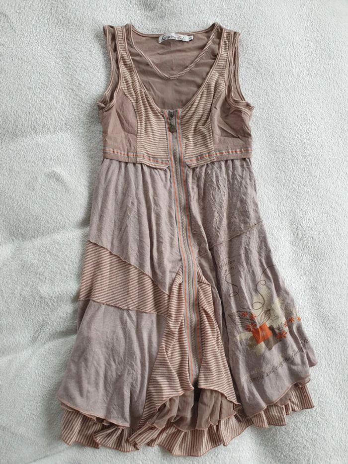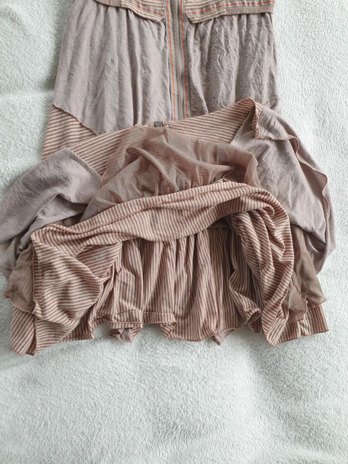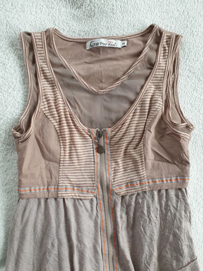 Robe beige et son bolero. Taille 2 ou M. Avec volants. Matière fluide et léger. Fermeture éclair sur le devant. #eve.08_vetement_femme_M