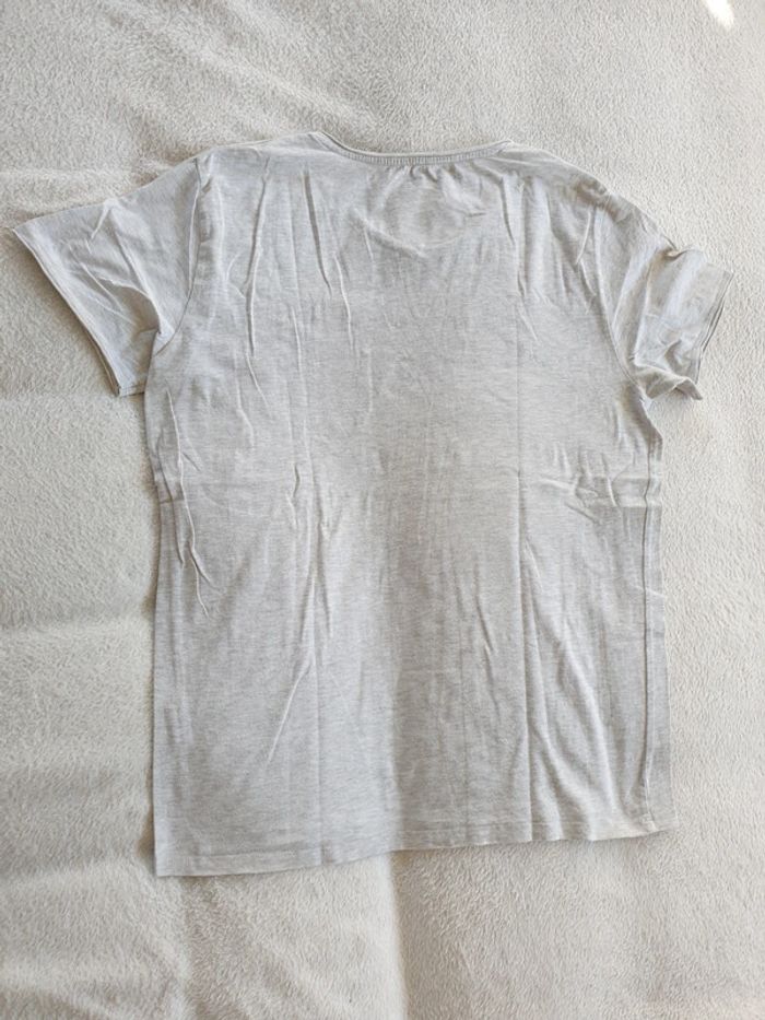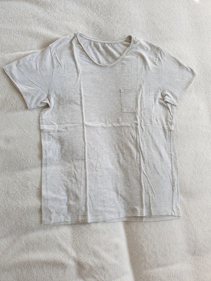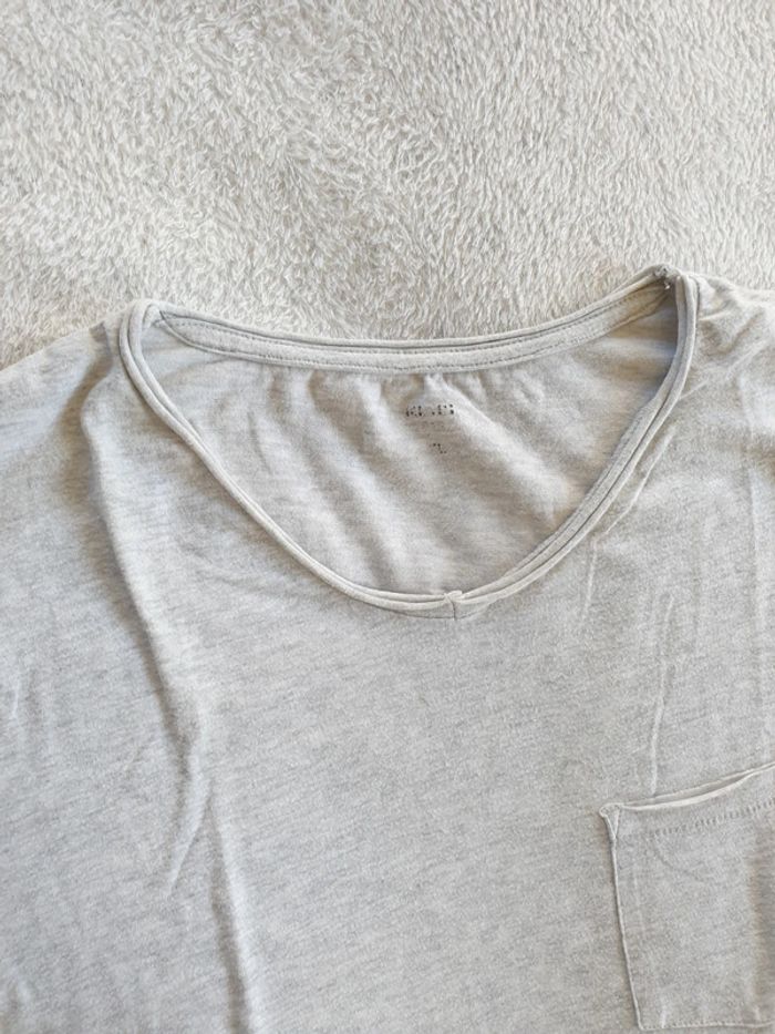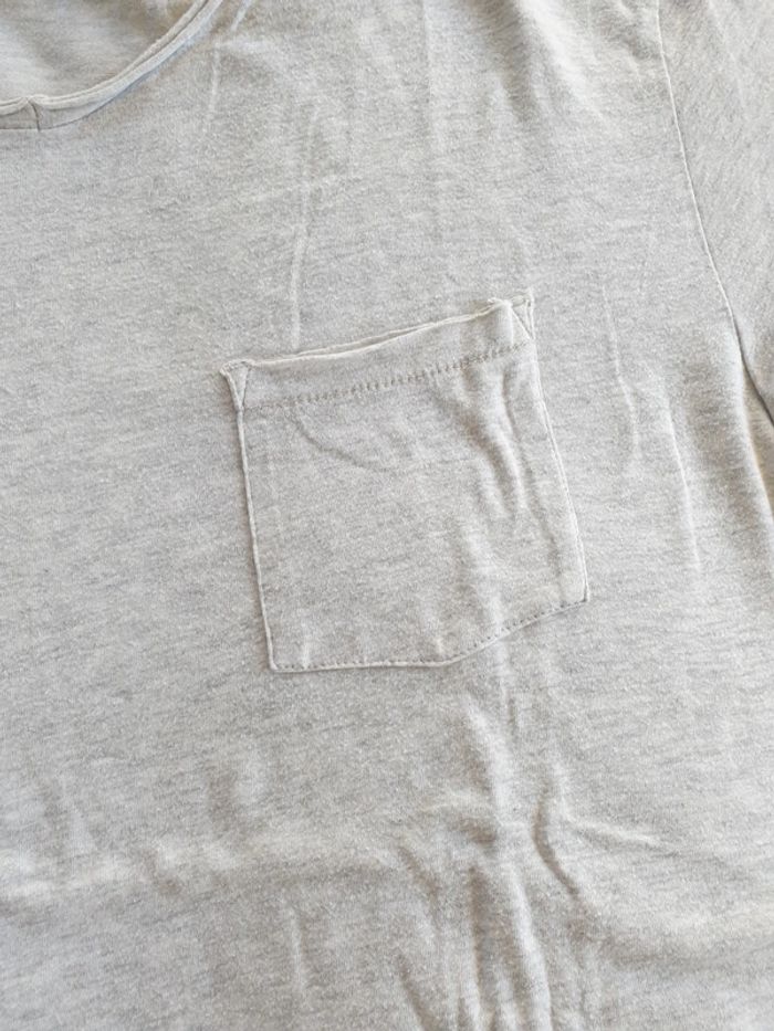 T-shirt XL avec poche et col V. Gris chiné. Bords des manches, poches et col effets coupés. #eve.08_vetement_homme_XL