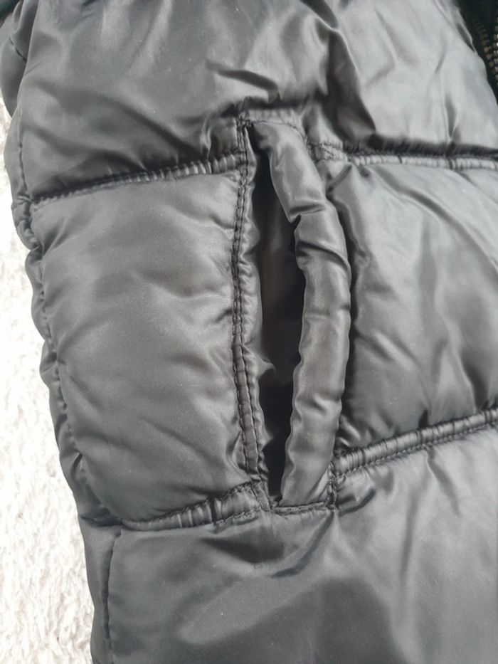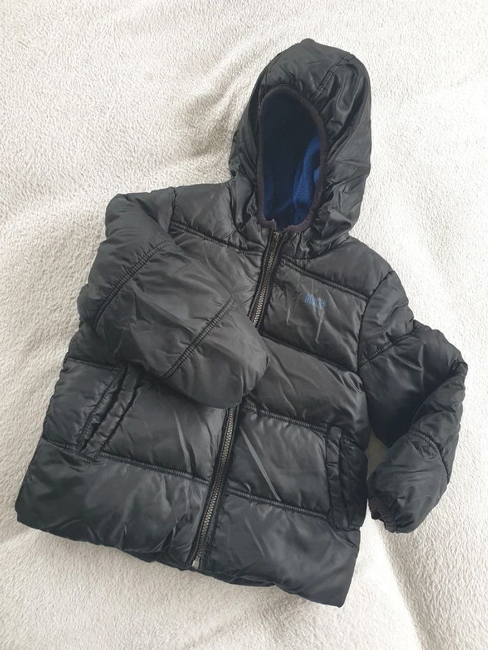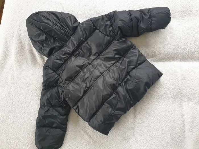Doudoune enfant noire. 6 ans. Avec poches capuche et fermeture éclair. A déjà été beaucoup portée mais peu encore être mise (jouer dehors...) #eve.08_vetement_garcon_6ans