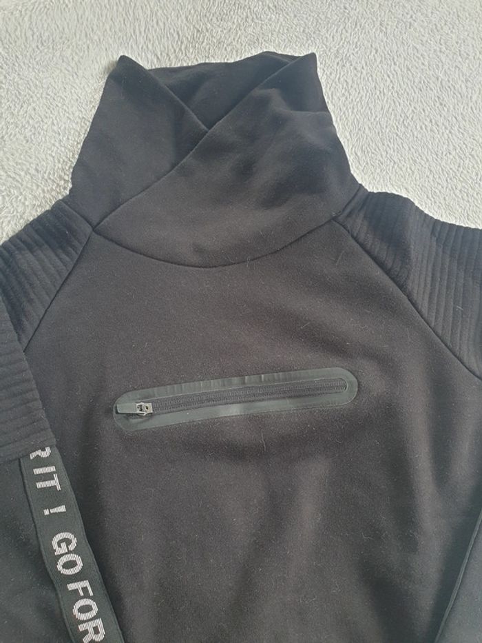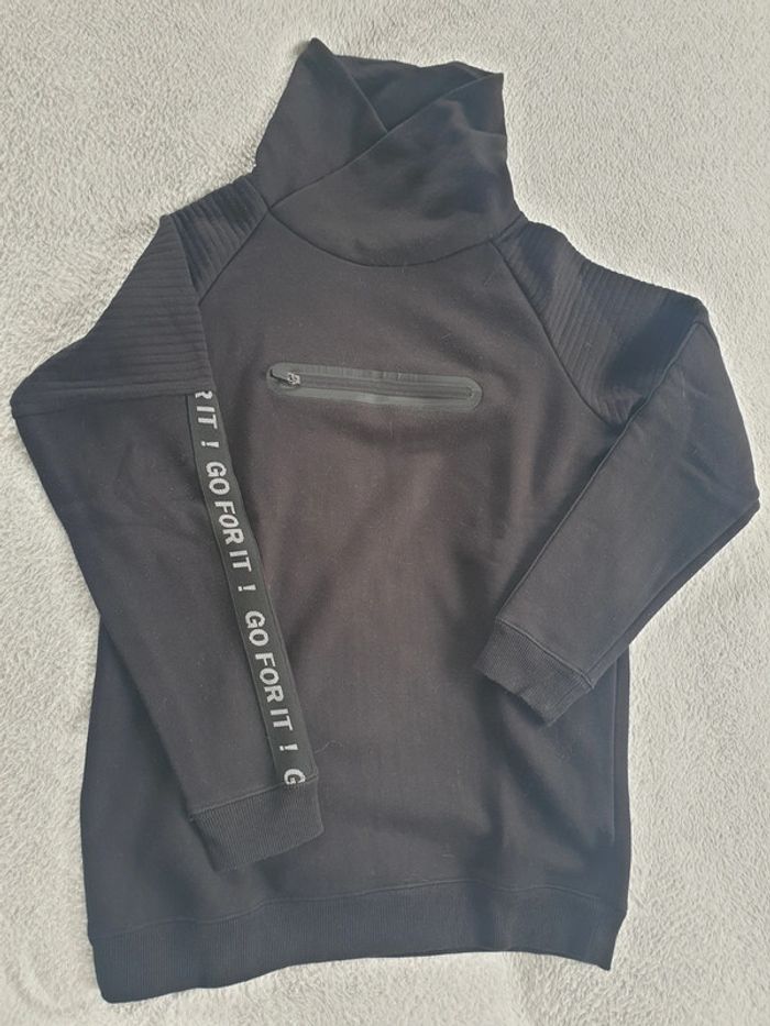 Sweat shirt XS ou 14 ans. Noir. Col haut, il peut être laissé haut ou être plié. #eve.08_vetement_garcon_14ans #eve.08_homme_XS