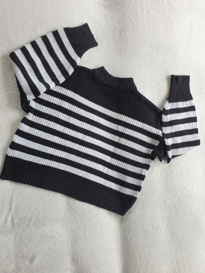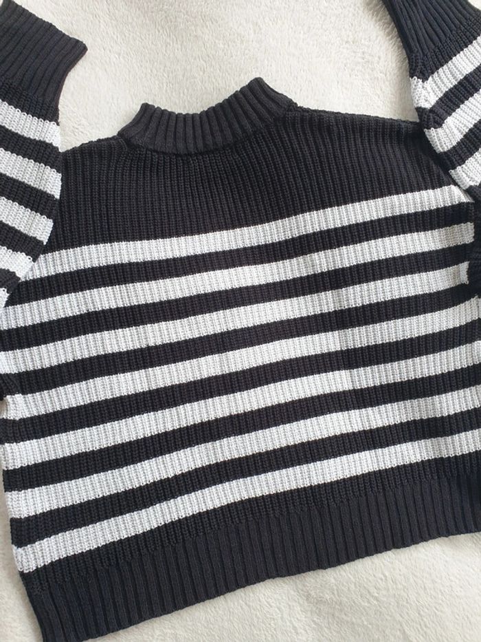 Pull fille à lignes noires et blanches XS - photo numéro 1