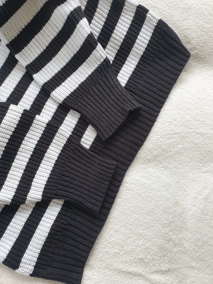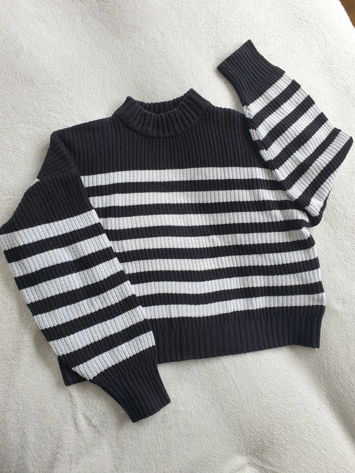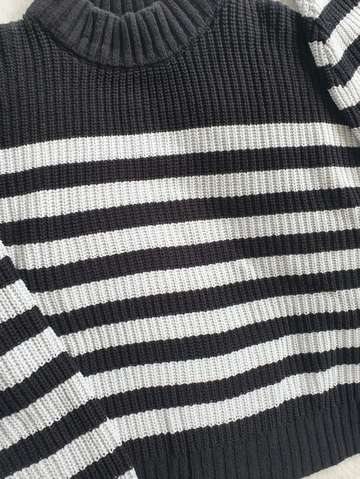 Pull à lignes noires et blanches. XS. Fille. Col droit. #eve.08_vetement_fille_14ans #eve.08_vetement_femme_XS