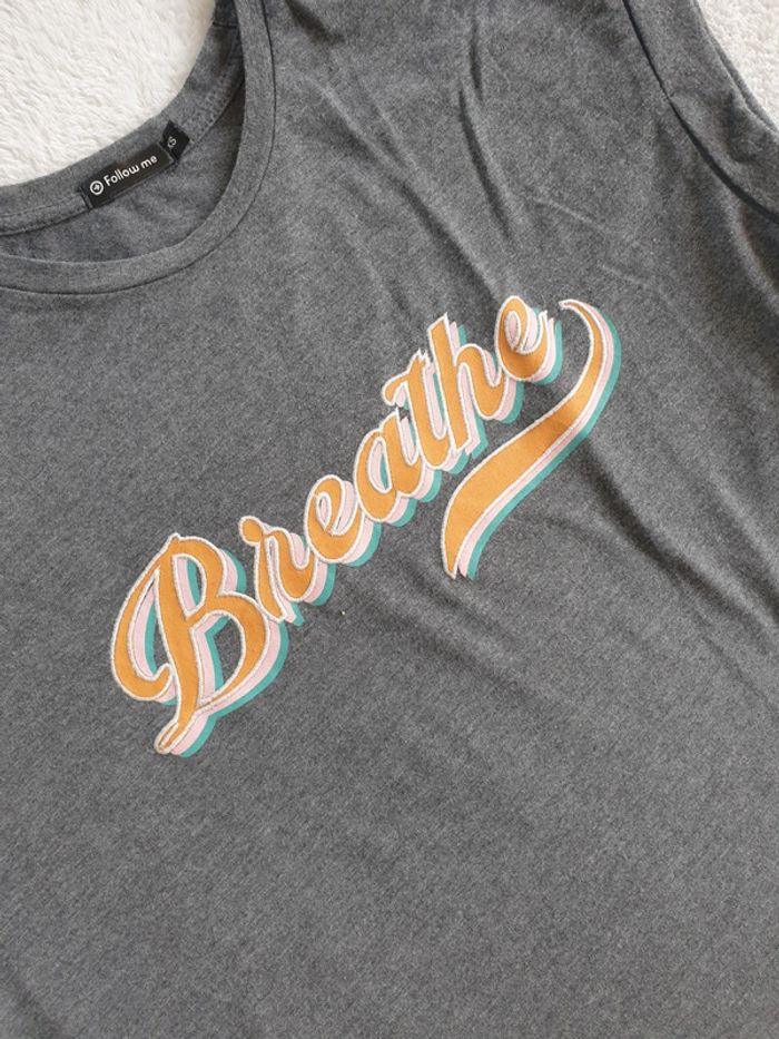 T-shirt XS gris. Inscription brodée. #eve.08_vetement_fille_14ans #eve.08_vetement_fmme_XS