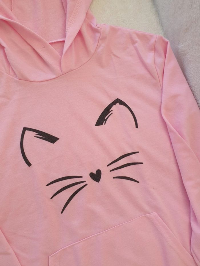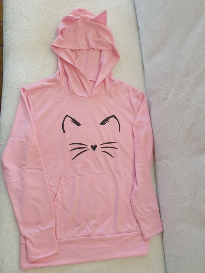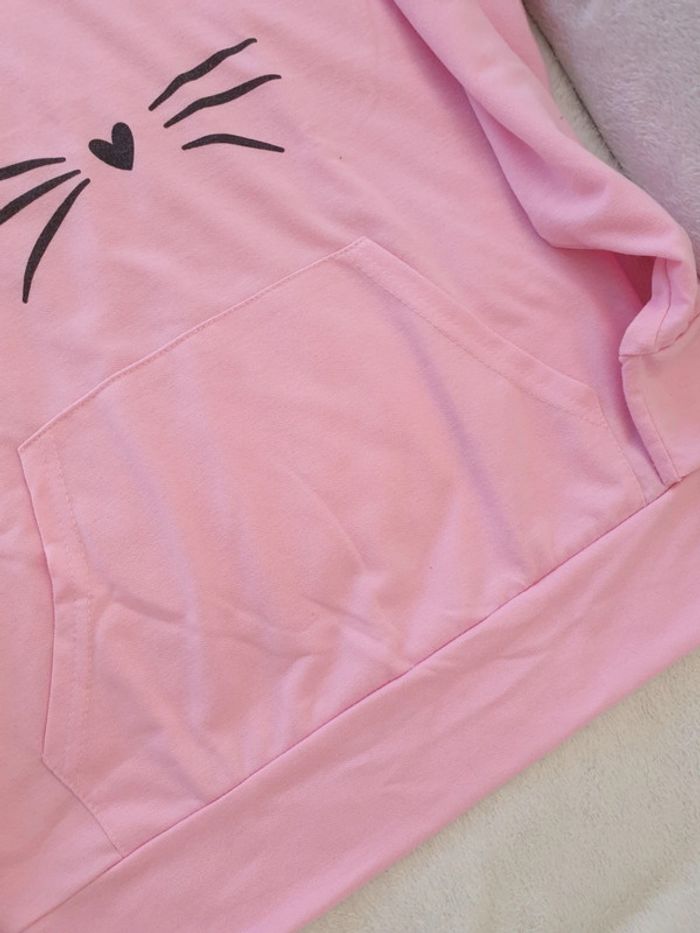 Sweat shirt rose. S. Poche et capuche avec oreilles. Fin. #eve.08_vetement_femme_S