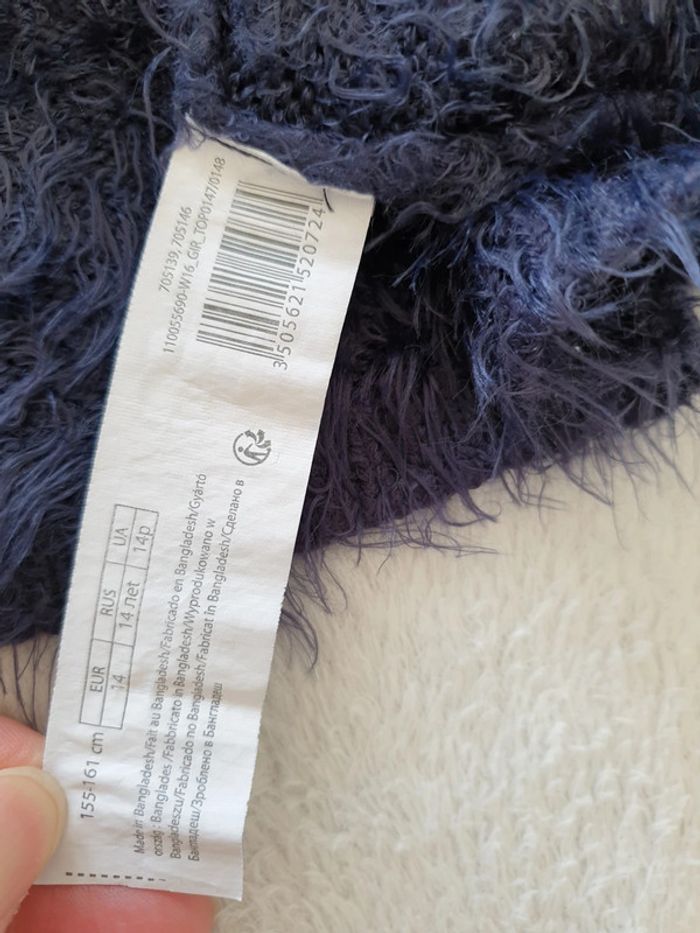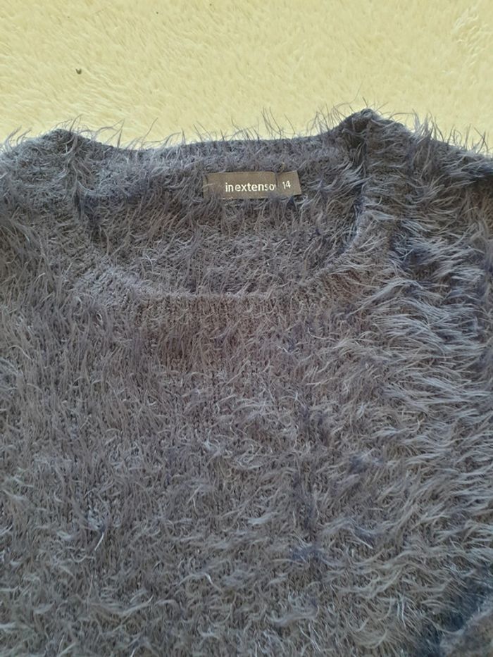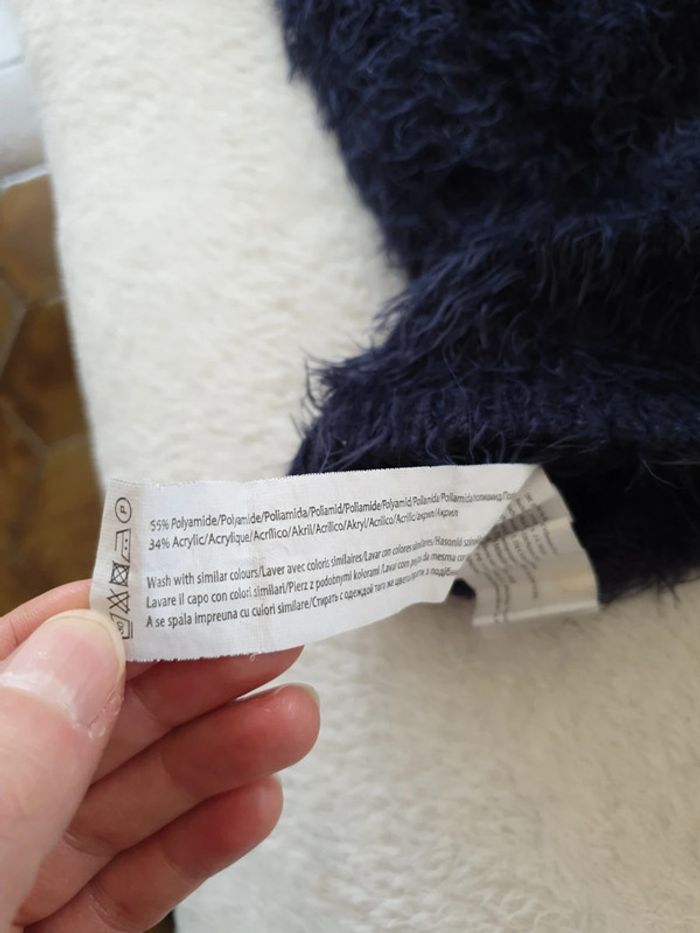 Pull a poils bleu marine. 14 ans. Plutôt fin. #eve.08_vetement_fille_14ans