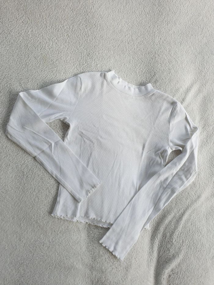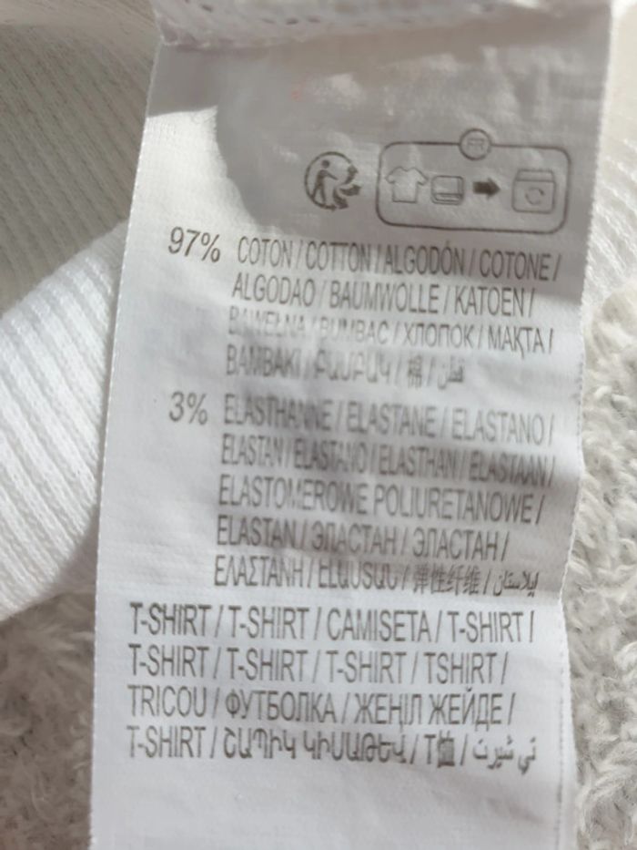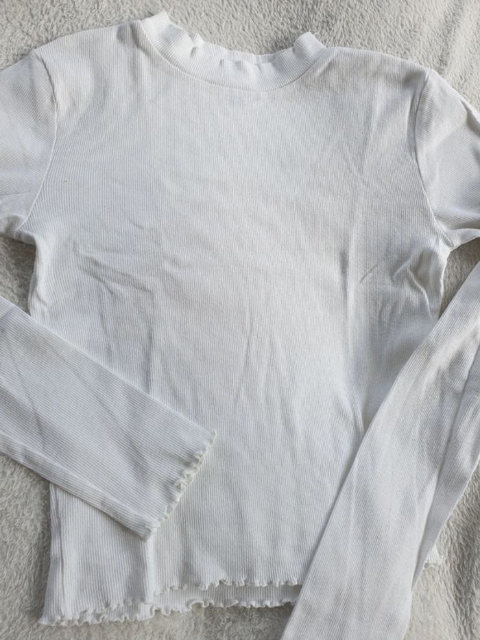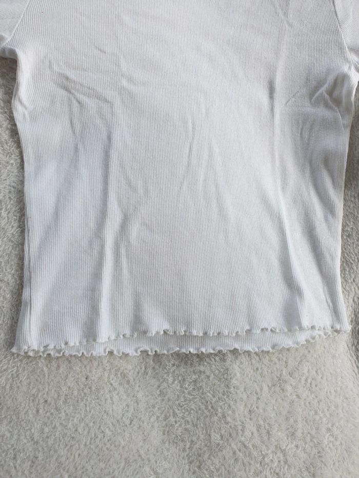 T-shirt S. Tissu a côtes. Blanc. Bas et Bas des manches froncés. #eve.08_vetement_fille_16ans #eve.08_vetement_femme_S