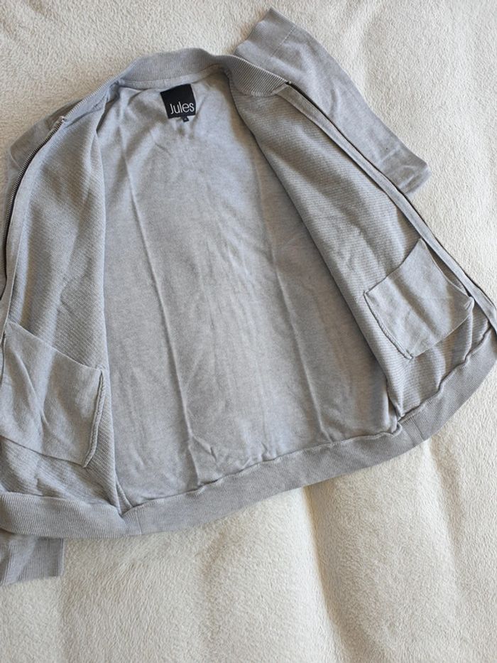 Gilet homme M. Gris avec poches et fermeture éclair. Mailles a côté sur le devant. #eve.08_vetement_homme_M