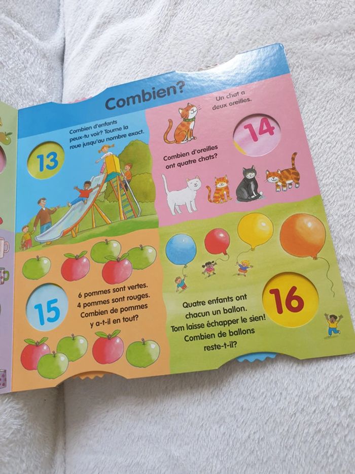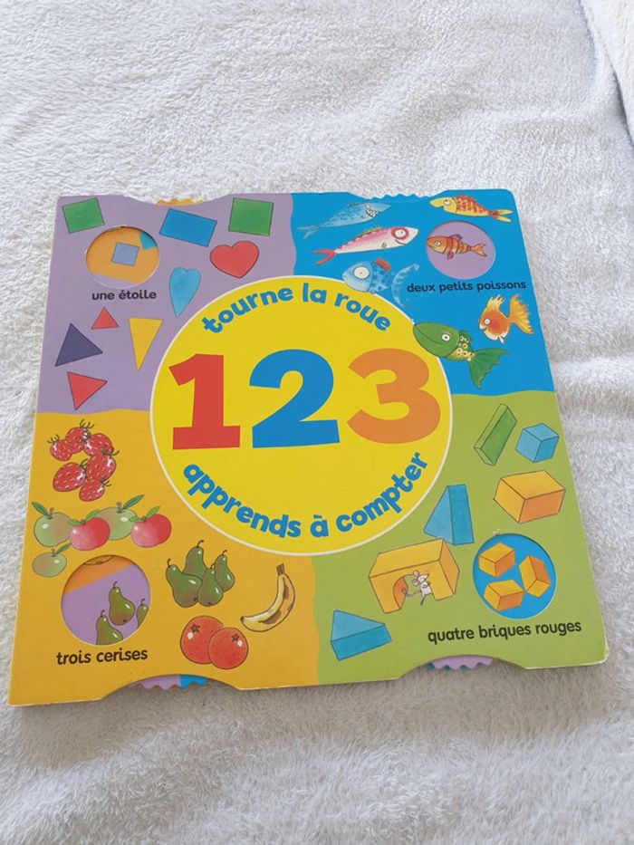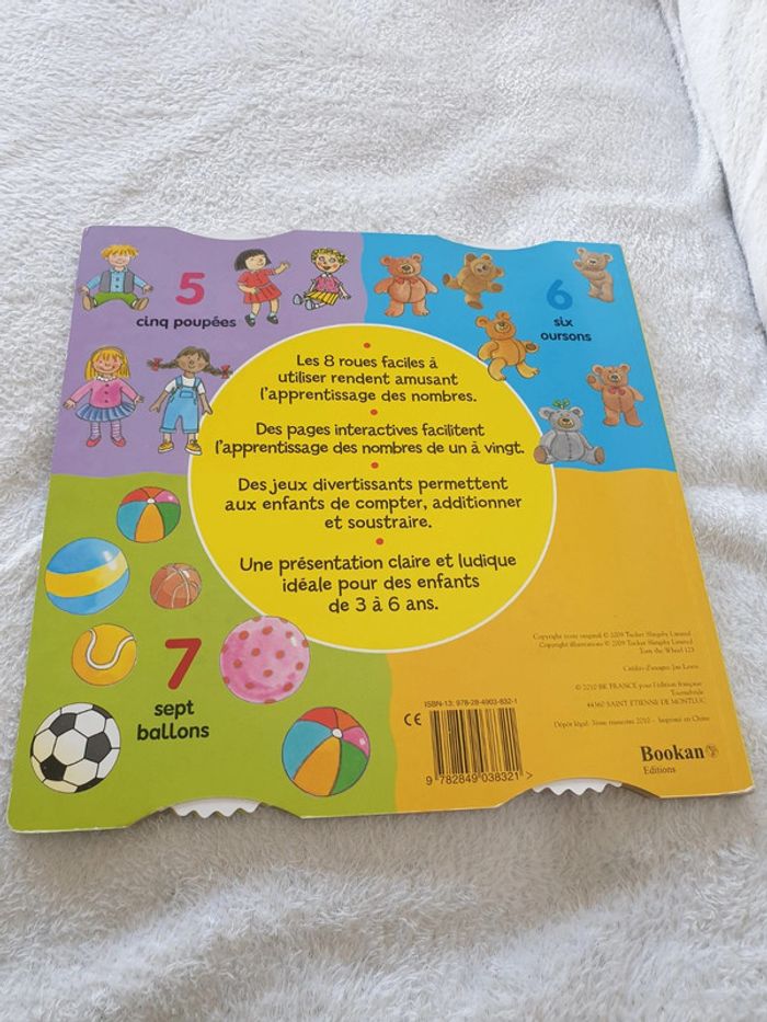 Livre jeux, avec 8 roues pour apprendre les nombres. Tourne la roue, 123, apprends à compter. De 3 a 6 ans. #eve.08_livre