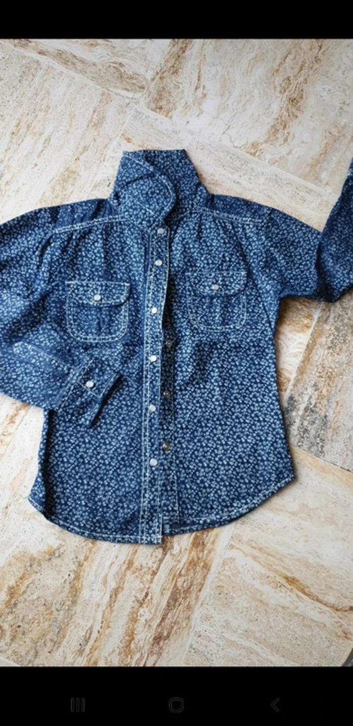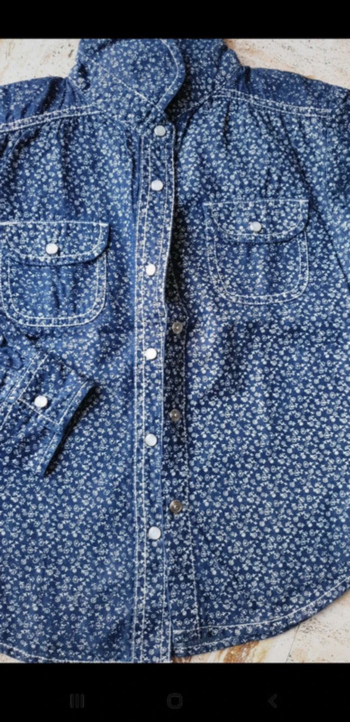 Chemise fille. Taille 8 ans. Boutons pressions. Bleu marine avec petites fleurs blanches. Tres bon état. #eve.08_vetement_fille_8ans