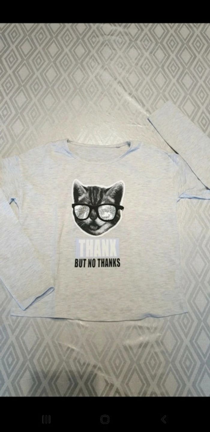 T-shirt manches longues avec tête de chat a lunettes de soleil. 8 ans. #eve.08_vetement_fille_8ans