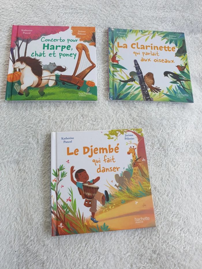 Ensemble de 3 livres collection En avant la musique: Le Djembé qui fait danser La Clarinette qui parlait aux oiseaux Concerto pour Harpe chat et poney Parfait état. #eve.08_livre