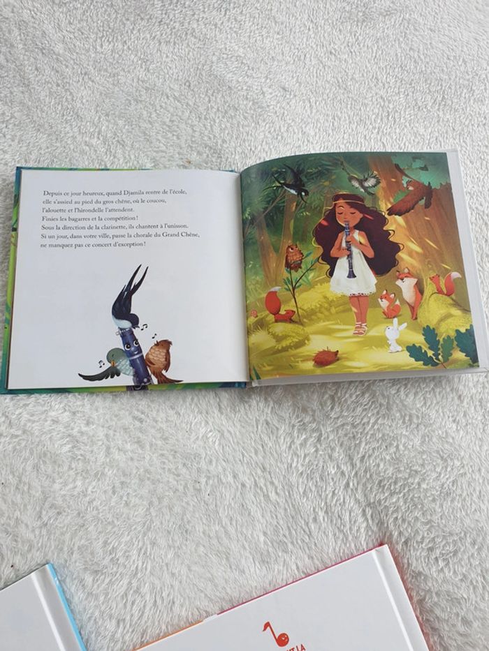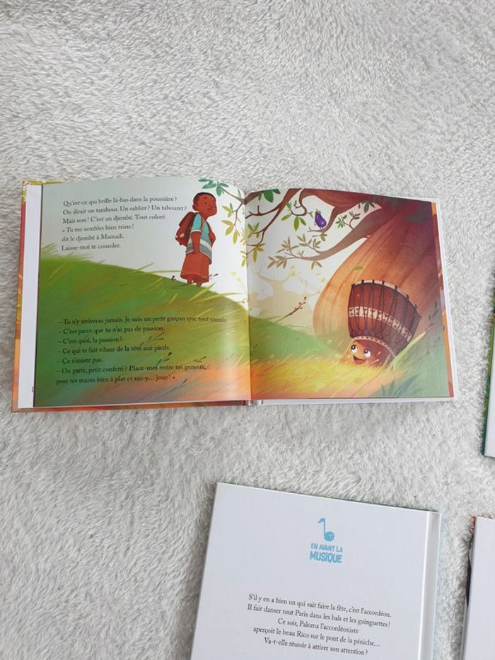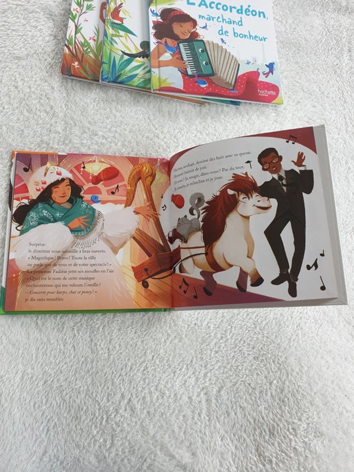 Ensemble de 4 livres collection En avant la musique: Le Djembé qui fait danser La Clarinette qui parlait aux oiseaux L'accordéon marchand de bonheur Concerto pour Harpe chat et poney Parfait état. #eve.08_livre