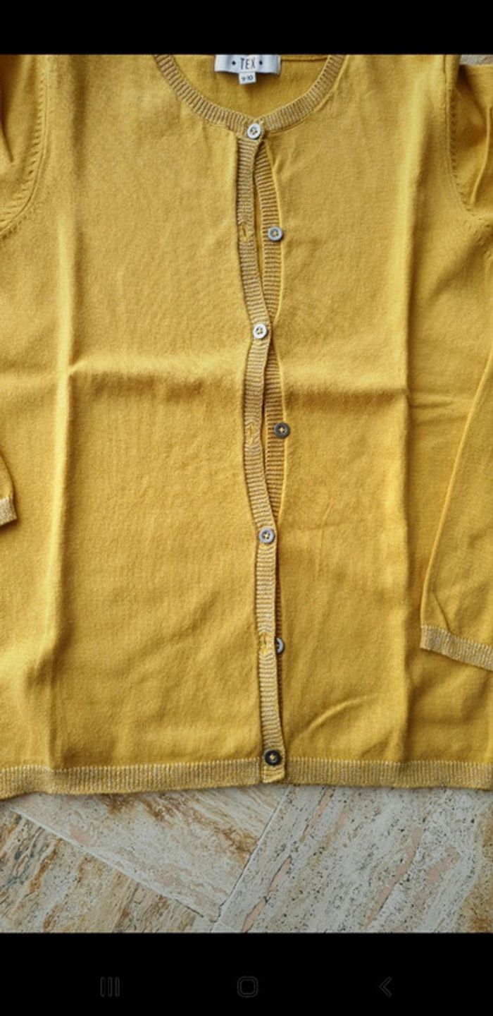 Gilet fille 9-10 ans. Moutarde et fils argentés. Neuf. Jamais porté. #eve.08_vetement_fille_9ans